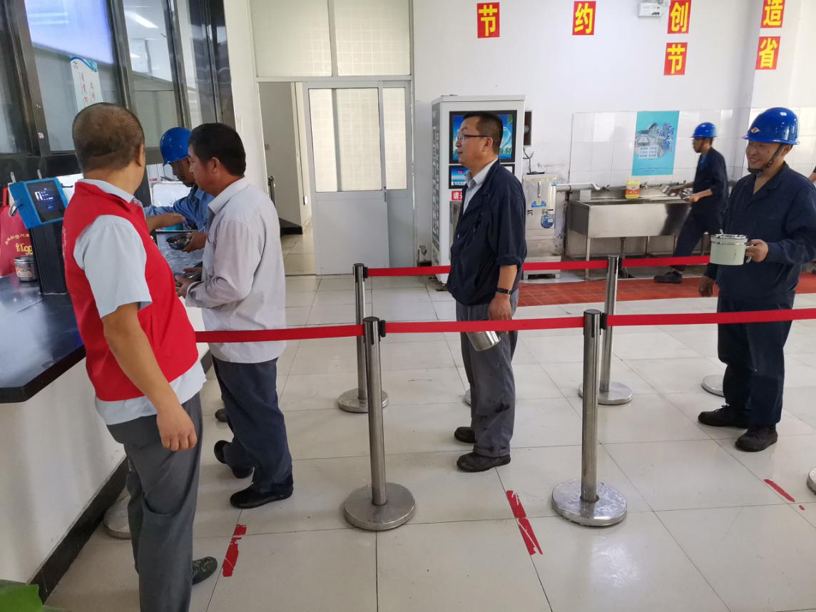 上午10:50 “文明餐桌志愿服務(wù)隊”成員已穿上紅馬甲,在職工餐廳集合,擺放好餐桌上的隔離擋板和椅子,規(guī)置好餐廳取餐窗口的警戒欄桿。11:00開飯時間到,陸續(xù)有員工到達(dá),11:30各車間員工、外協(xié)檢修人員同時到達(dá)職工餐廳形成就餐高峰。通過“紅馬甲“的指引勸導(dǎo),職工們根據(jù)飯量不同,按需打菜,垃圾桶里剩菜剩飯明顯減少,取餐窗口排隊秩序井然,單人單桌就餐或雙人隔板就餐文明規(guī)范。